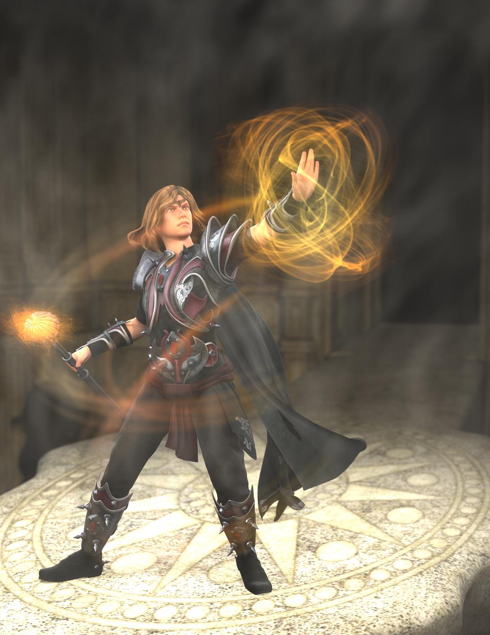 All I had time to do tonight is add Jepe's SteamZ for the fog/mist effect, and a plane primitive for the magic effect in his land hand. All of these effects were done in Daz Studio.