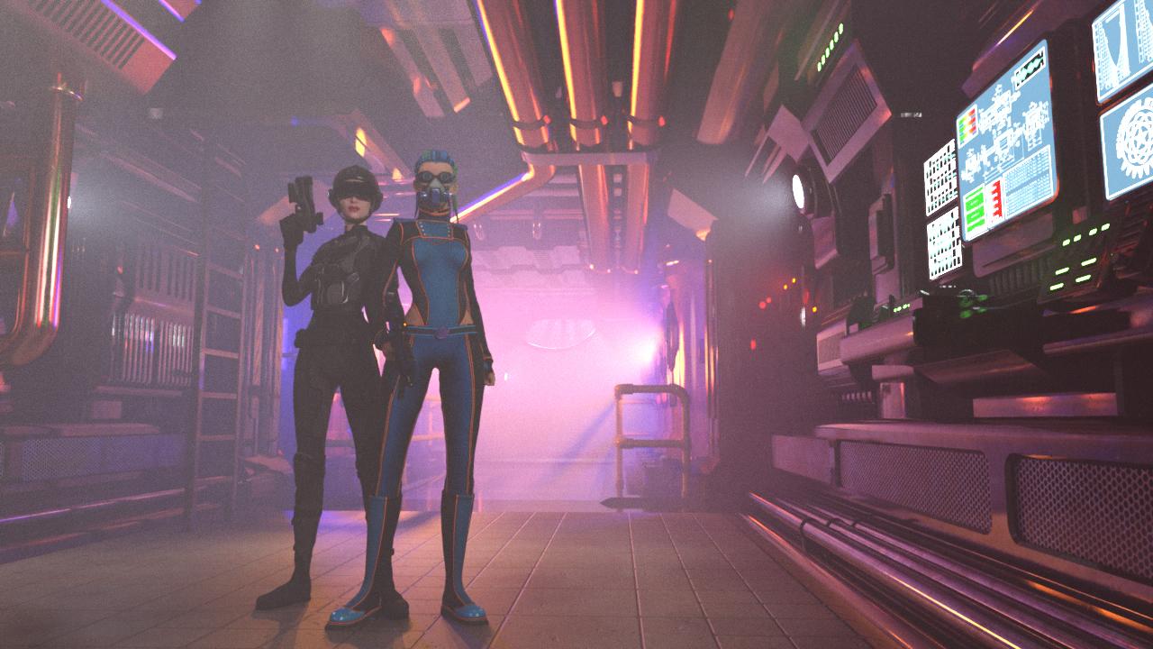 Shinji, I really like where you ventured with this one, and yes the music is in there. The green for the eyes works very good. There just one suggestion: to alter the camera postition enough that the foot of the robot in front is not cut off. just placing the camera a tad lower should do the job, as there is enough free space over their heads.