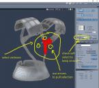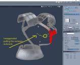 In the modeling room, use the selection tools to pic some of the vertexes around the region of the harness where there is poke through. They turn red. I selected a big batch.