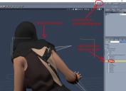 Here are some screenshots for using the third method (directly selecting and pulling vertexes of the clothing model) for the harness.