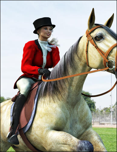 Riding Habit by SickleYield and I and now owned by Daz. This is an 11-piece set including pants that morph into jodphurs, shirt collar, boots, crop and three different kinds to riding helmet - British, Safety Helmet and Dressage Hat. It comes with lots of classic textures.