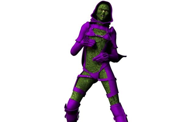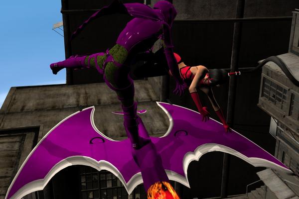 A quick render of anew character I'm working on... She-Goblin. I made her glider using a few primitives and a couple of drunkendragon's Batarangs. Hope y'all like.