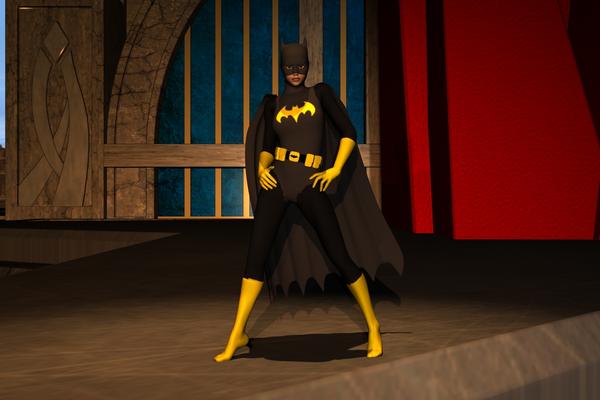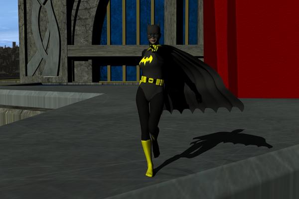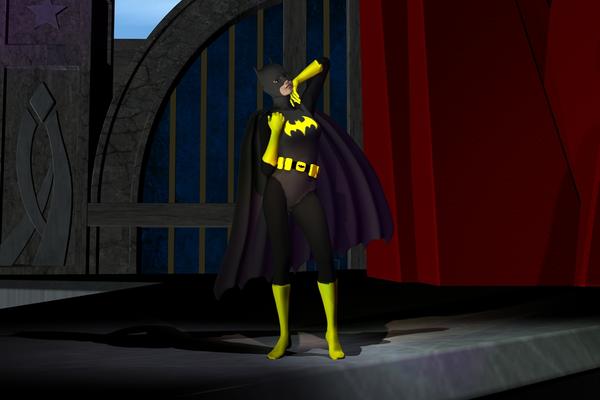 Here's an old-school Batgirl posing in front of the Hall of Justice. Many thanks to the artists whose items I used...