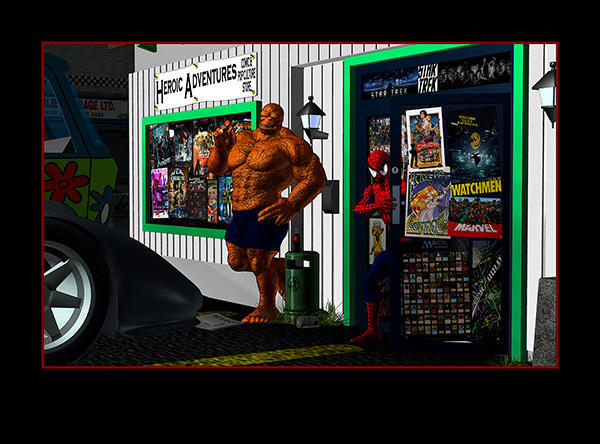 Did this for the owner of my local comic shop, I made the model of the store to match his store front. What do you guys think, will he like it?