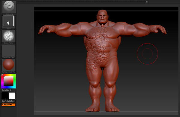 Subdivide up to around 15 million, use the standard brush in dragdirect mode and set your alpha to be that image i uploaded above. Then you're just dragging that onto the figures surface in overlapping ways. You might have to adjust the brushes focus some to eliminate any hard straight edges on the outside rectangular borders of the brush..