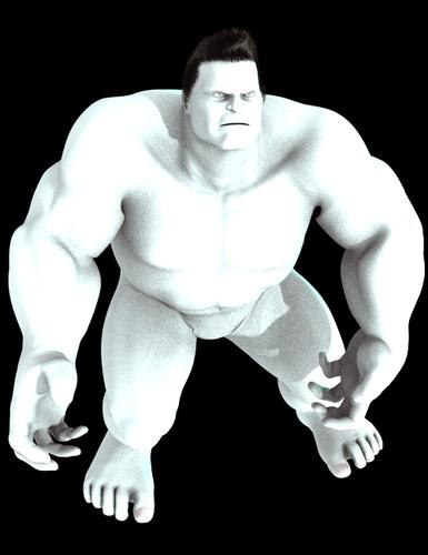made an attempt at sculpting my own hulk like full body morph for genesis. i think i need to redo the abdomen, in some poses i get a strong crease running across his stomach which leads me to think I scooted some of the mesh too far north or south.