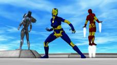 Playing around with the Supersuit (although the helmet's from Zikeo's Armour Y). From left-to-right that's War Machine, Rescue, and Iron Man. (Yeah, I know those aren't Rescue's colors, but I'll bet if Pepper gets armor in IronMan3 it's gonna be in a distinctly different color scheme from Tony's.)