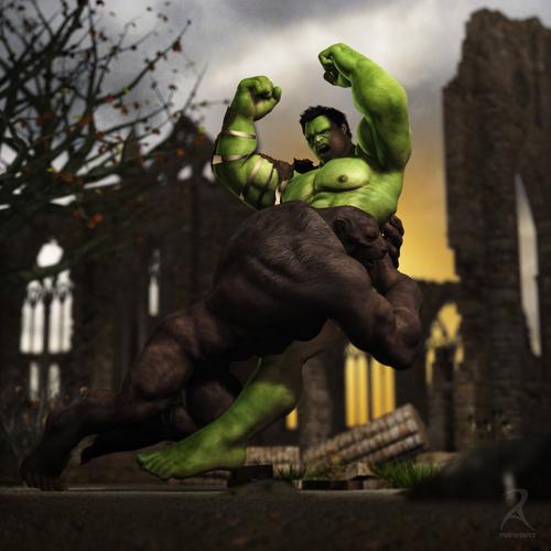 It's not art...but I wanted to see what would happen if the hulk got bit by the werewolf LOL