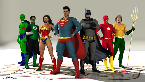 Revisiting a concept: the original Silver Age founding membership of the Justice League (what can I say... I like my League old-school and my Earths infinite); this time, in a composition inspired by the title card/promo image from the DCAU interpretation.