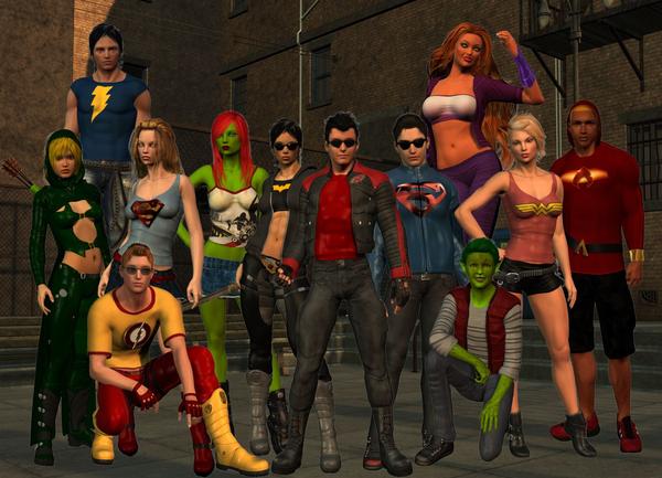 So last Friday I took my computer to work with me and the oldest client pulled out some drawings he did of a team of super heroes. We opened up D|S (2.3 as I still don't have 4 working on my new computer) and put together this image of the team in a few short hours..