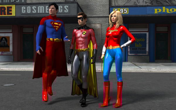But skin also determines a character's appearance/resemblance. I lightened The Joker's in Photoshop and for Fairchild, Wonder Woman and Superman I chose skins I already knew rendered well in Reality/LuxRender, all of which are photosourced.
