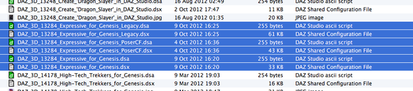 Also just noticed .dsa and .duf files under the Expressive for Genesis folder in My Library, plus the png files are duplicated but with .dsa.