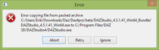 Good news is DAZ Studio 4.5.6 64 is still intact so no problem there, hopefully I'm the only one that is having this problem and if that is the case I'll wait until the release candidate is available.