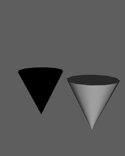 The cone on the left was scaled -100 % Y-axis, the one on the right 'inverted' (which means 'flip all normals', in PropViewer lingo)...in PropViewer The 'fix normals' option aligns them all the same way...so if they are all pointing 'in', it won't do anything.