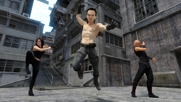 Here's a new render with characters based on Hiro 5 and Hiroism CMG. I put it together before I had Aiko 5, so I used one of the female morphs from Hiroism. It's just not quite the same, is it? Anyway, this trio was just waiting for a nice environment to start a fight in, so as soon as Stonemason's Walled City came on sale in March Madness, I had to pick it up. :)