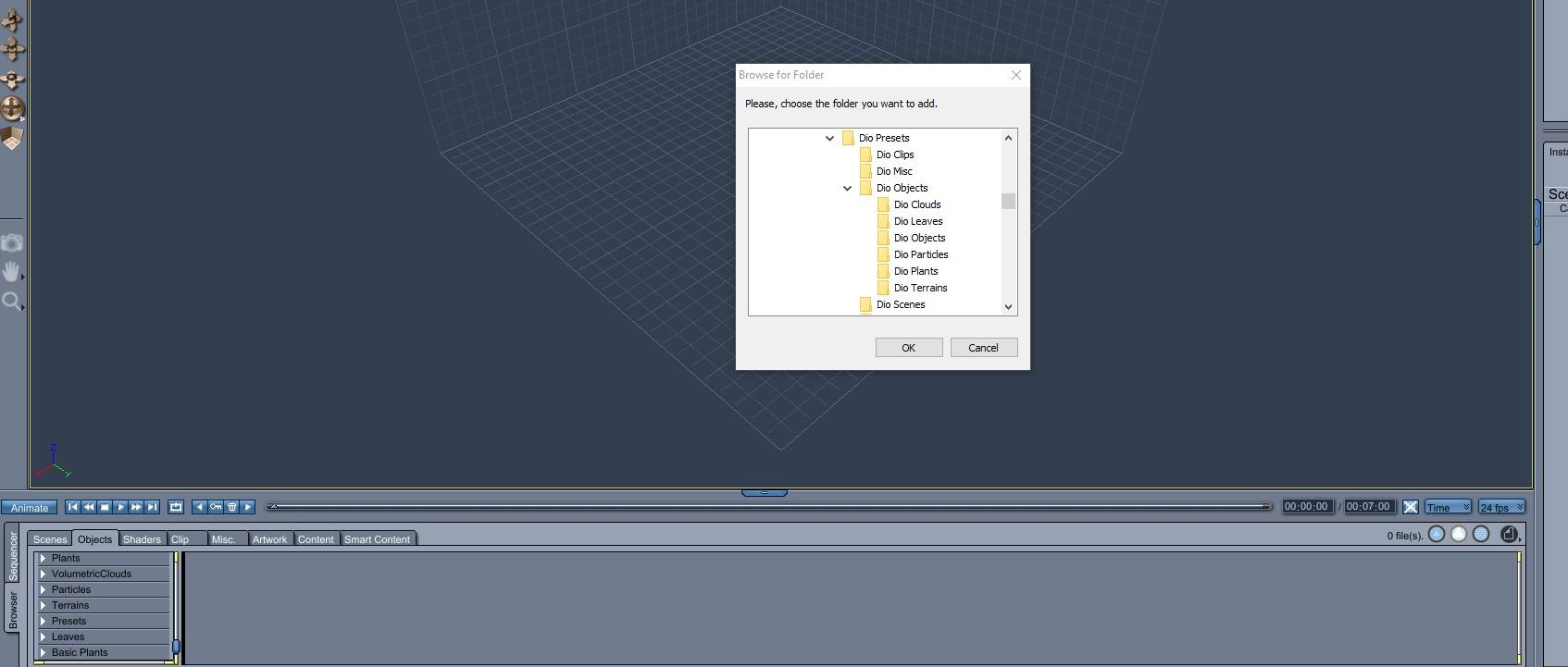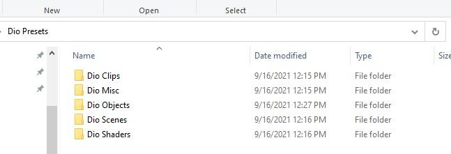 - Setting up objects folders.  Create a presets folder, in my case Dio Presets.  Create subfolders for objects, shaders, clips, etc.  I used Dio as a prefix for each.