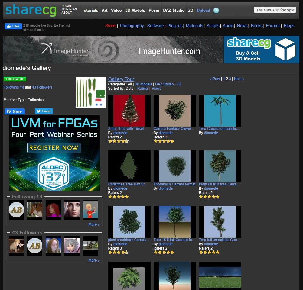 Here are some examples from my ShareCG page.  Most of the plants are in Carrara format, but a few of the recent ones are converted to Daz Studio props.  They should be labeled.