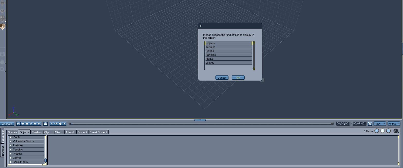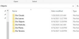 - The object and shader folders use specialty subfolders.  Objects can be clouds, terrains, particles, plants, leaves, or generic objects.  I created a Dio subfolder for each.