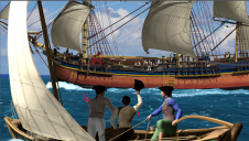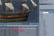 One of my problems is that when I use Carrara to actually do work..all the things I learned.. lets say from Phil's tutorials..slowly gets forgotten..... For example, the the button to animate the timeline. I know Phil covered that in the basic lessons, and I knew it at one time.... but not actively using it the information fades. However, the good news is that I am getting better and better in the modeling sector of Carrara and starting to turn out some product. At present I am working on animating the figures on the ship...I'l include a still from the video clip. Next will be getting the wake and spindrift right. last I have to revisit the figures in the foreground..for some reason even though I have a straight alpha channel checked it seems to be premuliplying so that there is a white outline on the figures. Finally..I have to have shirts on the figures that do not look like they are painted on. The figure on the far left has a more reasonable shirt for the period. Then there is the work in AE to tone back the color and Sat. There are some many facets to Carrara that needs to be mastered to turn out a sophisticated product... I get the feeling I am about three rungs up on a very tall ladder. It looks like it will take another couple of years, at least, until I am anywhere close to the understanding of the program that most of you on the site have..