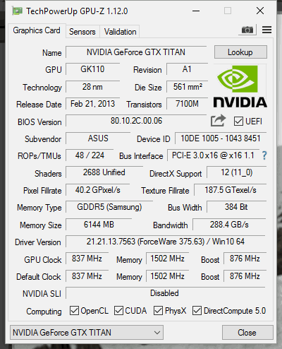 VRAM on card 6144 MB (dedicated rendering GPU not assigned to the display)