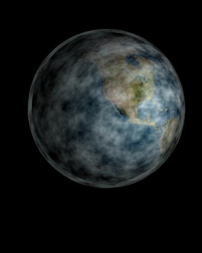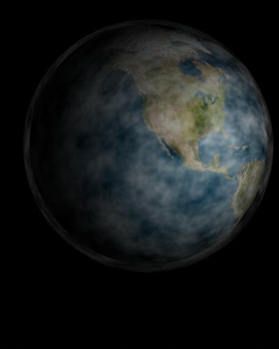 In the image below I used a primative sphere for the planet and then geometry shells for the clouds and atmosphere... done in DS 4.5 and rendered with 3Delight