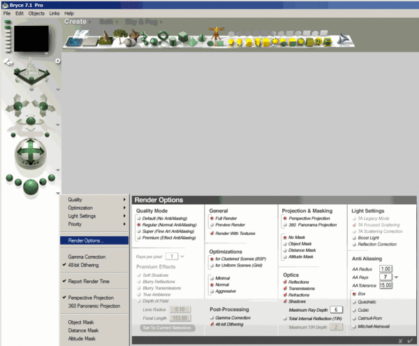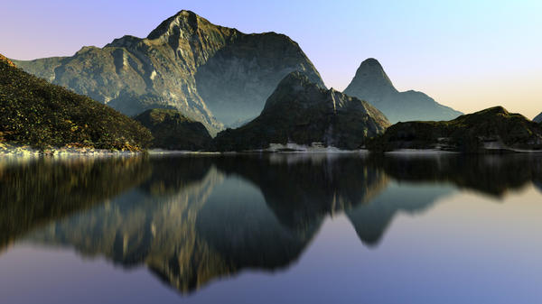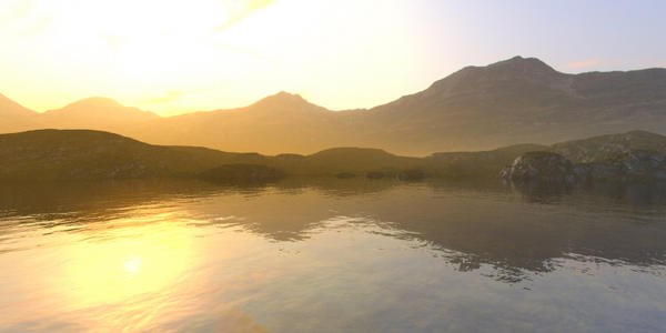 Bryce 25 minute scene - anisotropic reflection in a landscape - a tutorial by David Brinnen