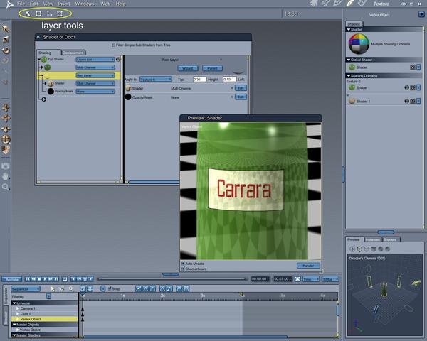 I use carrara's modeling room very little. I model and map with Hex. Free here in the store.