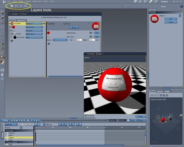You draw the appropriately shaped layer for your image (label) directly onto the model in the shader preview window,.