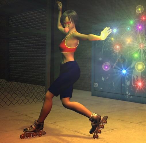 Did this a long time ago. All the "sparklies" were postwork. Used several different coloured spotlights for the surrounding area and a couple point lights close to her hand in the rendered scene.