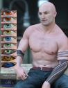 Material Hierarchy settings for the model and anatomical elements as well as the separate material files, long with individual materials for arms, legs, torso, and his face along with the anatomical elements. There is a no brow optioin, 4 individual eye colors, a bloodshot sclera option and three fantasy eye materials. Two leg tattoos, two arm tattoos and a back tattoo with mix/matching for different combos and an all tattoo setting.