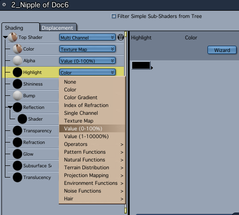 So, for the jacket, if your happy with how sharp the specular effect is, and want to just tone down the brightness, all you should have to do is lower the Highlight value. If there's a color in the Highlight channel, you can click the color chip and lower it to a darker color. Or you could use the pull down menu and change it to whatever your heart desires. If you liked using the materials settings stuff in D/S, then once you start playing with Carrara's shader room, you'll have a blast!