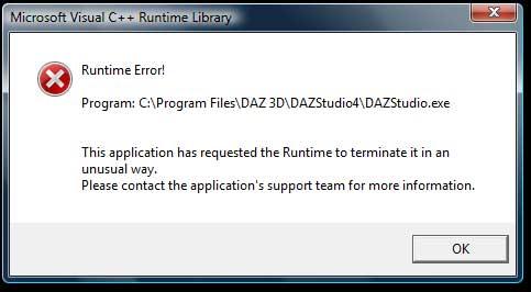 I keep getting a runtime error in daz when I try to render an image. The error attached pops up