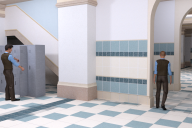 If you wanted to light the same room as a night scene, you could tackle it from a different angle. You could use some of the props from IGLK2 to emit light and mimic lamps/ceiling lights. Simply place some of the props provided around your scene and use the ghost light setup material once again.