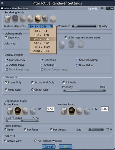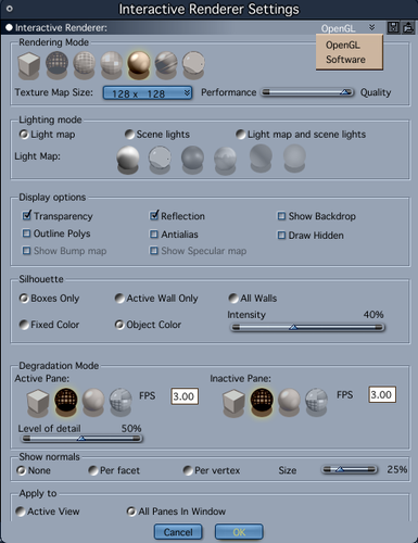 The Interactive Renderer (the up arrow within a circle) is very helpful. You can use software or OpenGL for the Assembly Room renderer. Unless you have driver issues with your graphics card, OpenGL would be the way to go. The Interactive Renderer has nothing to do with the Render Room. These settings are scene specific, so every scene you start you will have to set the renderer. Some people make and save a default scene with their preferred settings.