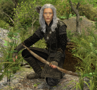 Here he is as a wood elf. I think the white hair makes him look a wee bit orange. I can try the fae skin or no brow, but I might also try the Skin Blender script I picked up to blend the first and second skins together. Could be interesting. I also used the NGS Anagenessis Revolution 2 shaders on him. It's just a rough render, stopped at 20% because the files are so huge for the background and clothing (Wildenlander HD for G3M).
