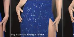 OK guys, comparison for you here. We are looking at the fabric in these examples, and not the skin. Iray render with Iray materials including metallic flakes/Iray materials rendered in 3Delight letting the program auto convert it/A quick 3Delight conversion. To get the gold circles to show up as gold in 3Delight, I'd have to do a whole new set of diffuse color maps, instead of just using a black and white mask for the metallic flakes. I wouldn't find the converted settings to be "good enough" to put my name on. In fact the 3Delight render of the Iray surfaces looks better to me than the converted one (except for the glossiness.) If I was going to sell twice the amount of product by doing full 3Delight materials, I would do it. My experience tells me the sales numbers "might" get an additional 10 units sold. Keep in mind, it isn't just making new maps, it is also saving double the amount of presets, and rendering double the amount of thumbnails.