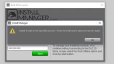 The first time I logged into DIM, it showed no packages to download. It showed the installed packages just fine. I have over a thousand items I haven't downloaded, so I'm not sure why it would be showing 0. All the authentication looks correct. I closed the program and relaunched it, hoping to get a screenshot to post here. Now I can't log into DIM at all. It's telling me it can't authenticate the account, but clearly I can log into DAZ since I'm posting here and am logged into the store. I've checked my credentials and they look fine.