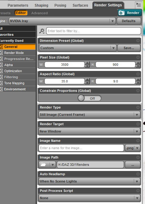 My viewing area is 1600x900. However, the scene is more than double that width ... 3500x900. How do I widen the rendering area without increasing the height?