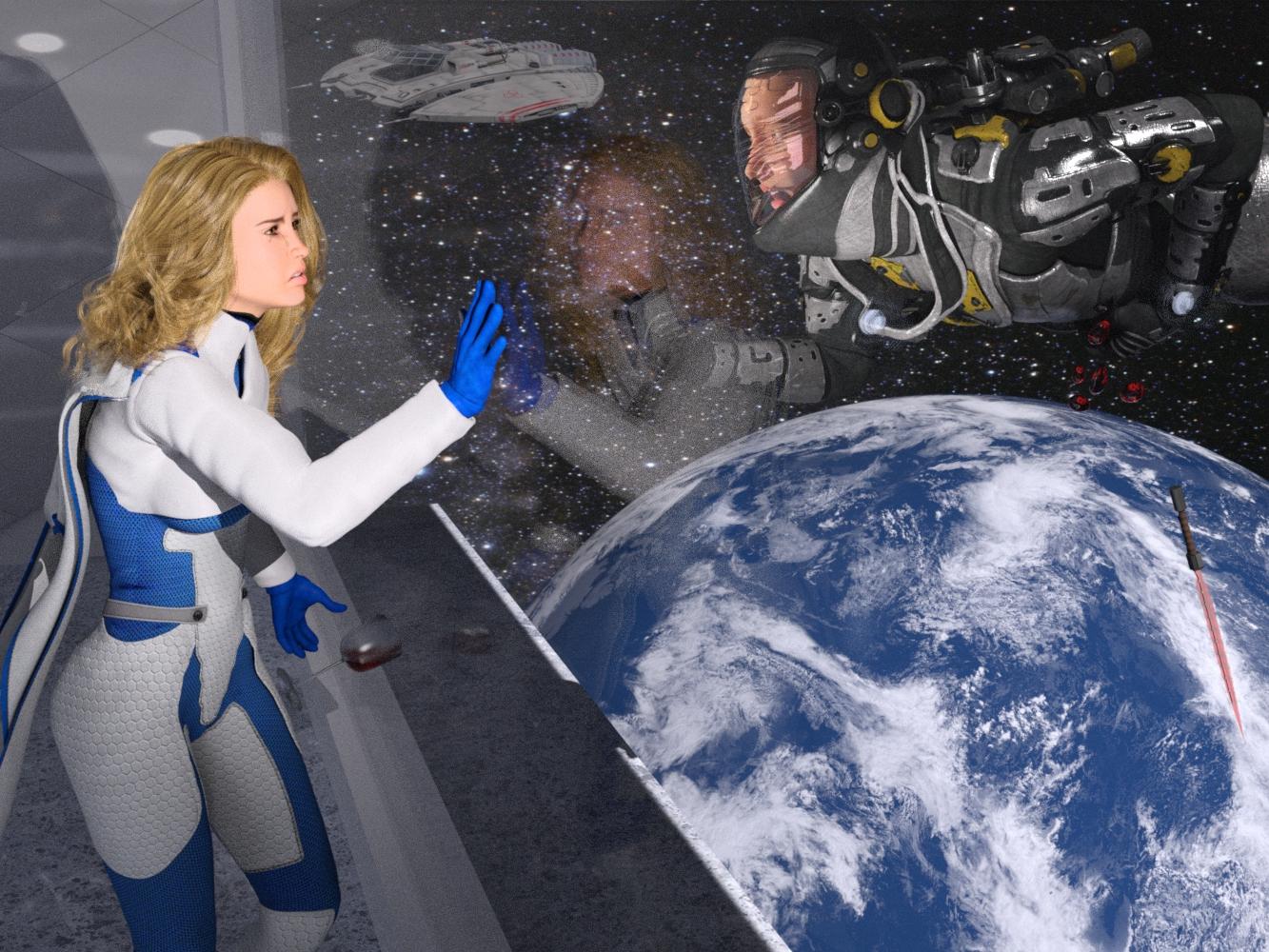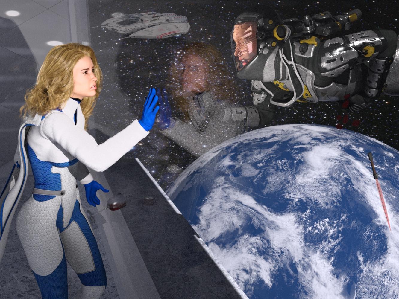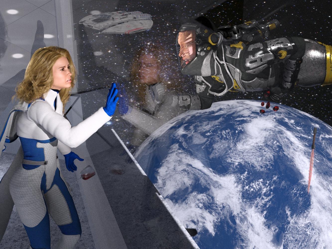 Thanks Dracorn. Those red blobs are indeed supposed to be blood in zero-G. Clearly I have more work to do on getting them to loo like it...so that's next on my list. Any suggestions on how to do it?