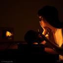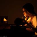 I also modified the lighting to get softer shadows. Since I used a point light near the flame, shadows on her face and dress were very sharp. So I placed 12 point lights near the flame, each one with a different position, and had to set intensity of each light to get about the same lightning than before.