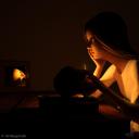 The extra light is helping her reflection in the mirror to show up a bit better.