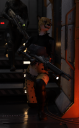 I like the spot of light on the helmet of the figure and the blue rim lighting on the leg and arm. The bullet tracers from the robot's gun and the impact dust from the wall are really helping to tell this story.