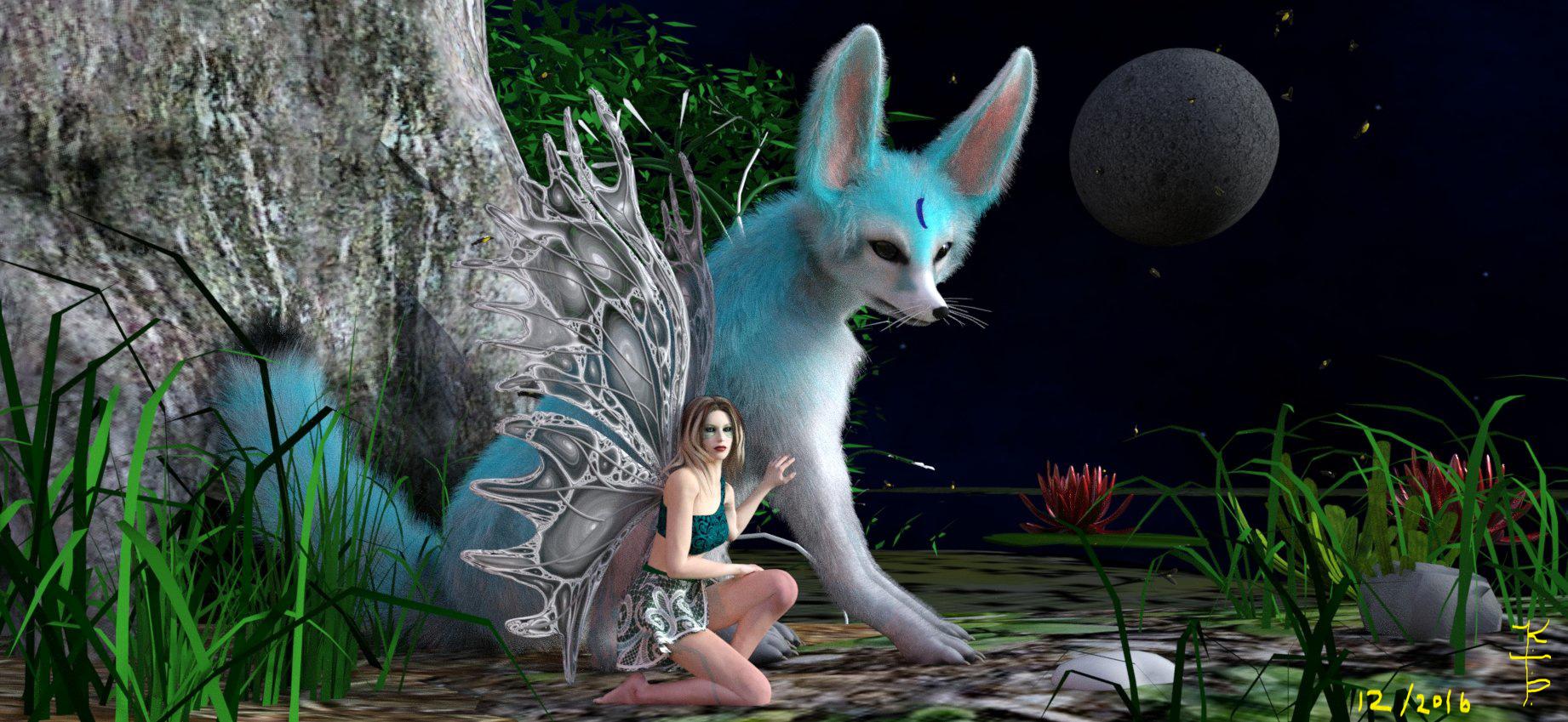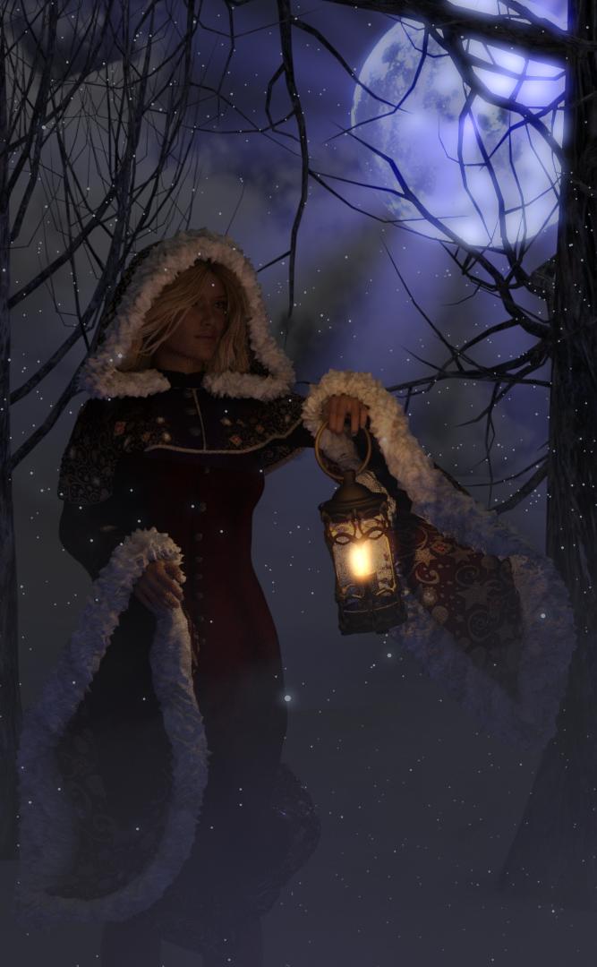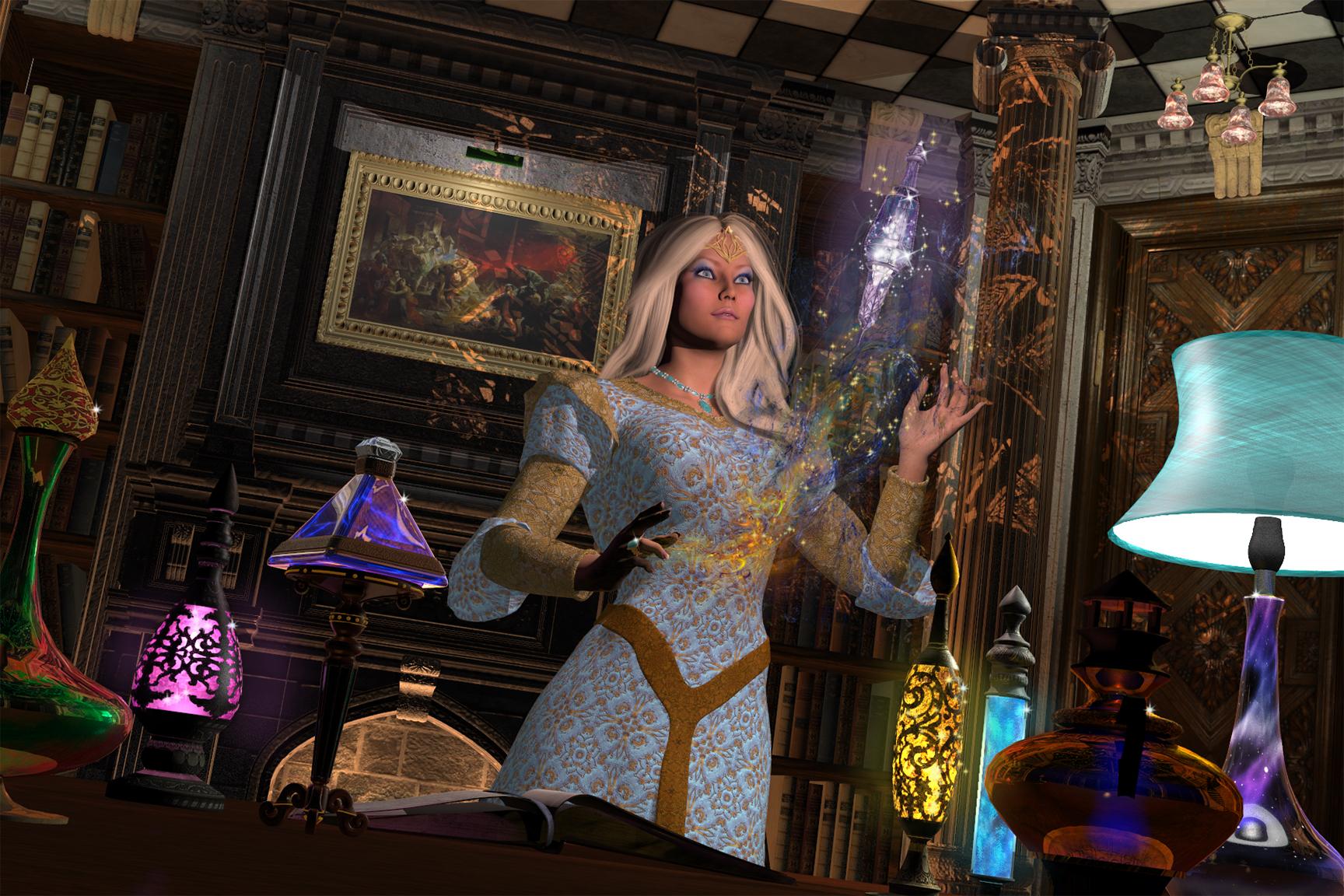 Daz 4.9 3Delight, with postwork in Photoshop for the magical effects. Significant retexturing of Vicki's skin (subsurfaces), clothing, jewelry, foreground and background. AoA's Advanced Lighting.