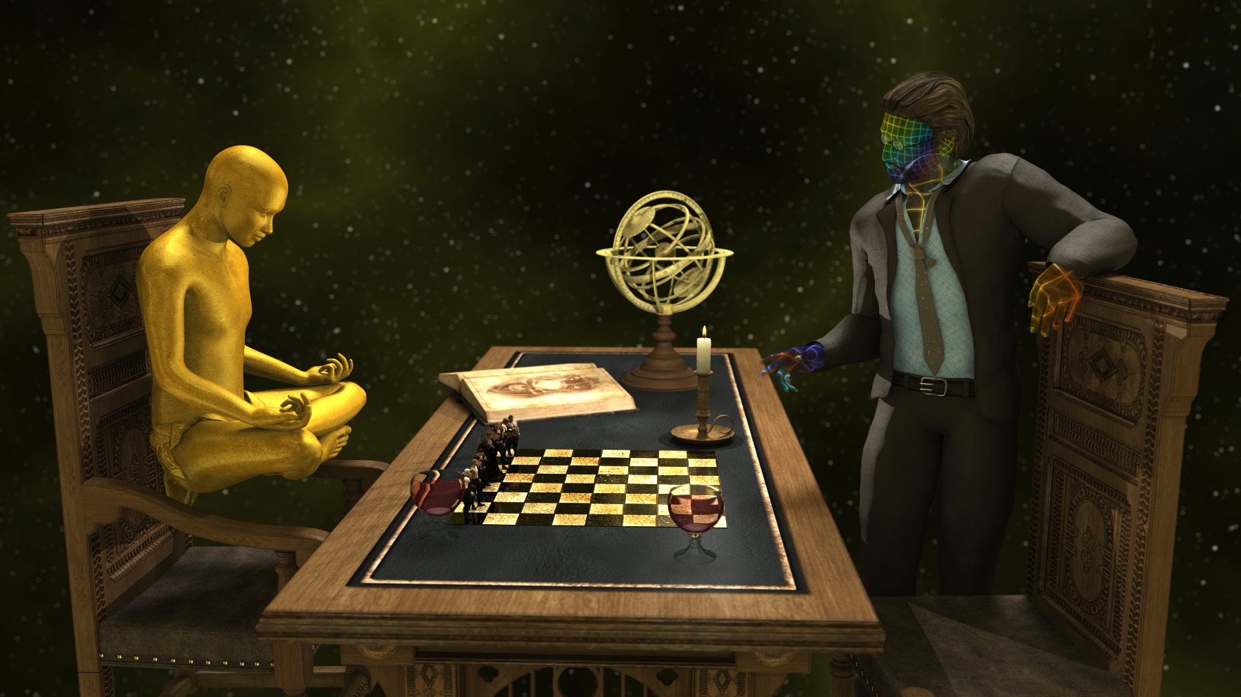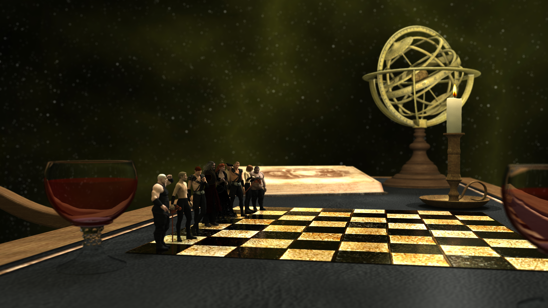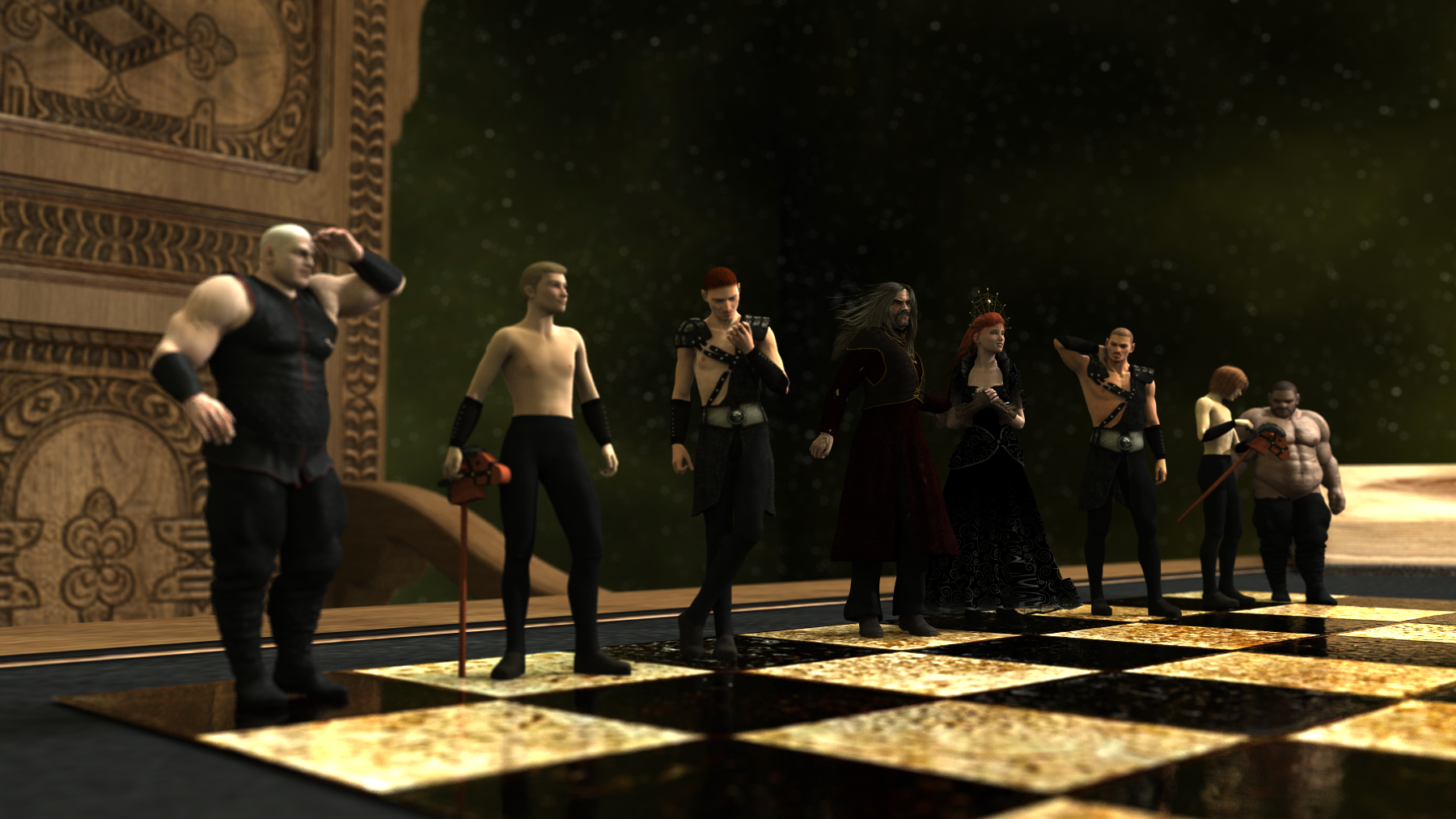 Here's a WIP: At The Nirvana Chess Cafe. More characters needed, when I have fixed that the game will begin;) They will all be Genesis1 custom morphs.