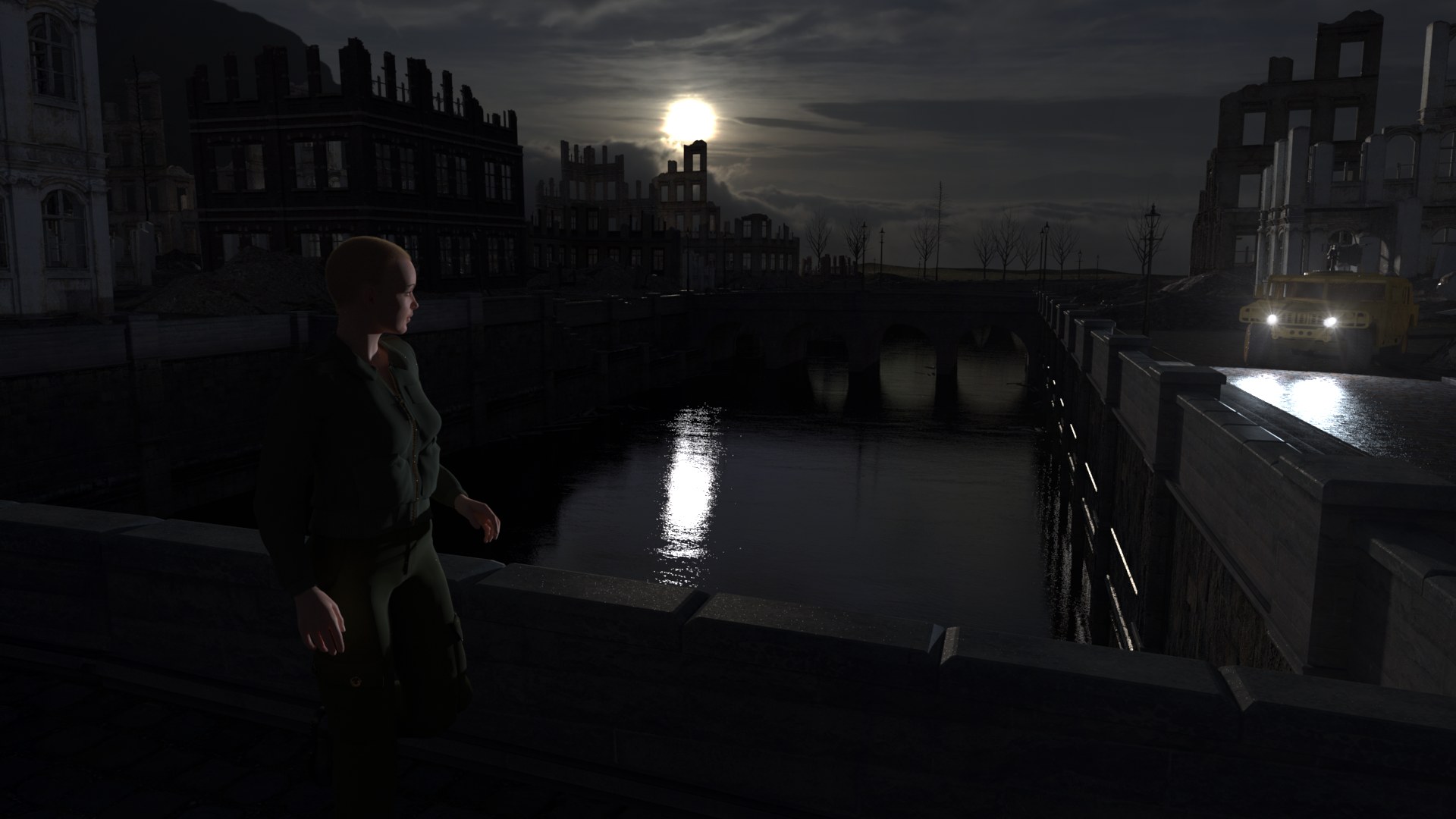 For the redo I opend up the texture files for the engine in Photoshop, and changed the green to red. But basically the only postwork was the usual general adjustments and sharpening. Done entirely in Studio, this time.