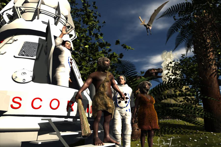 ​Other Context and Comments (including credits): Made the spaceship and club, retextured the space suit. Used Daz's dinos, Carrara's clouds.