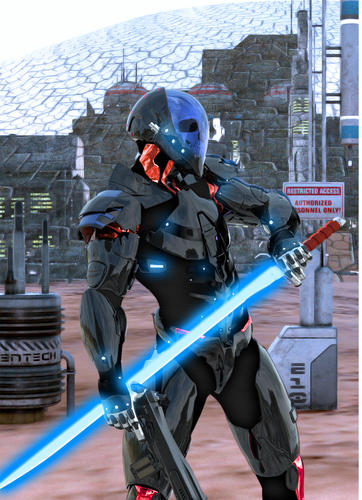 Secondly, I love the armor. This is almost exactly how I imagined and described in the novel. Although, Iaido in his armor should be a bit more imposing...maybe its the size ratio between Jagger Jax out of armor and Iaido in his armor. Outside the armor, Jagger Jax is much beefier than Iaido. But once he is in the armor, he should be about the same size (I would think). Although, I do love the Skull render on the helmet and the colorings of the armor.