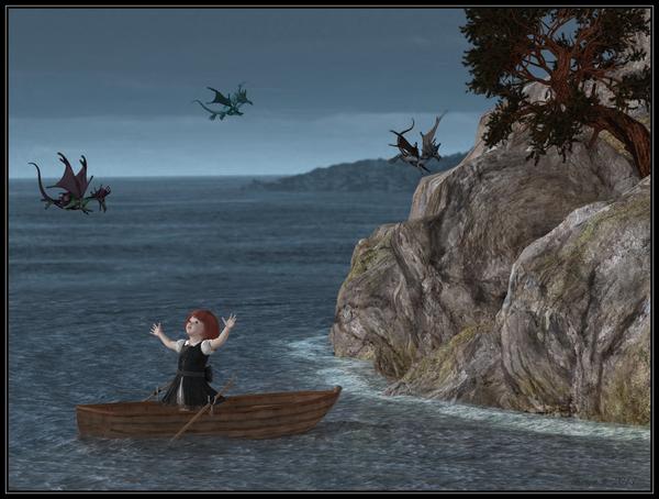 But there came a day when she met the old Margaret. She was very, very old and remembered the dragons. The old Margaret told her they had gone to the Rock. The Rock that was so far out in the bay that you could barely see it in the haze.