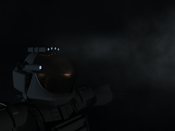 Here's a test render I did after I installed lights in Shukky's space suit helmet for A3. Not a space scene as such, but an element I needed for an animation I'm working on.