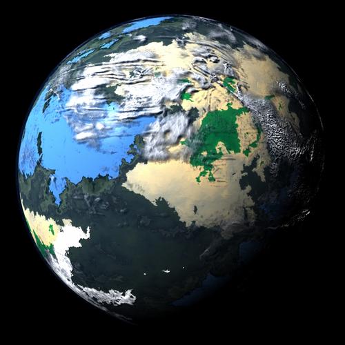The result of my first fictional planet. I want to make a number of improvements, but it captures the idea I had originally.